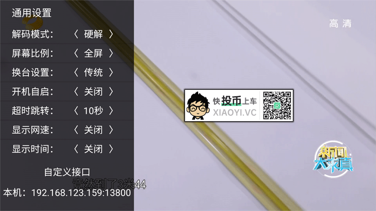 想要方便的管理直播源,可以利用远程方式,在「骆驼live」设置里面有一个“自定义接口”显示本机IP。