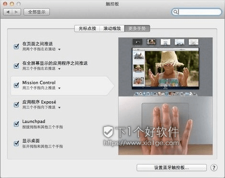 你可以到 系统偏好设置 → 触摸板工具,进入配置各项手势。