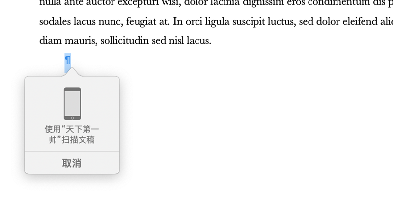 在文档中插入会弹出指示图标,引导用户使用 iPhone 或 iPad 进行拍照或扫描。