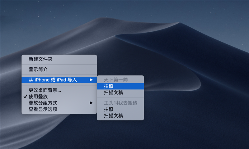 正常时,iOS 设备已连接到 Mac,拿起 iPhone 拍个照,再点击“使用照片”,一张刚拍的照片立即就会出现在 Mac 的桌面上。现在你可以根据需要编辑图片和文档了。