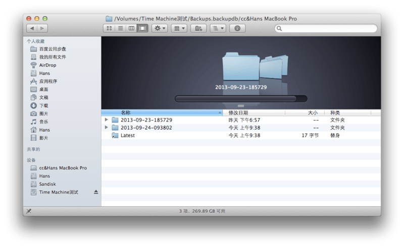 以下是Time Machine的磁盘目录,是可以存放其他文件的,不受干扰
