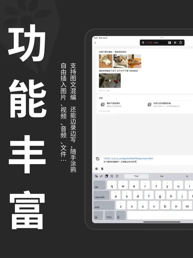 像聊天一样记待办「妙花笔记」提供了安卓 / iOS 版本,提供了开放接口、网页插件,支持支持图文混编,自由插入图片、视频、音频、文件,还能边录边写,随手涂鸦等功能。