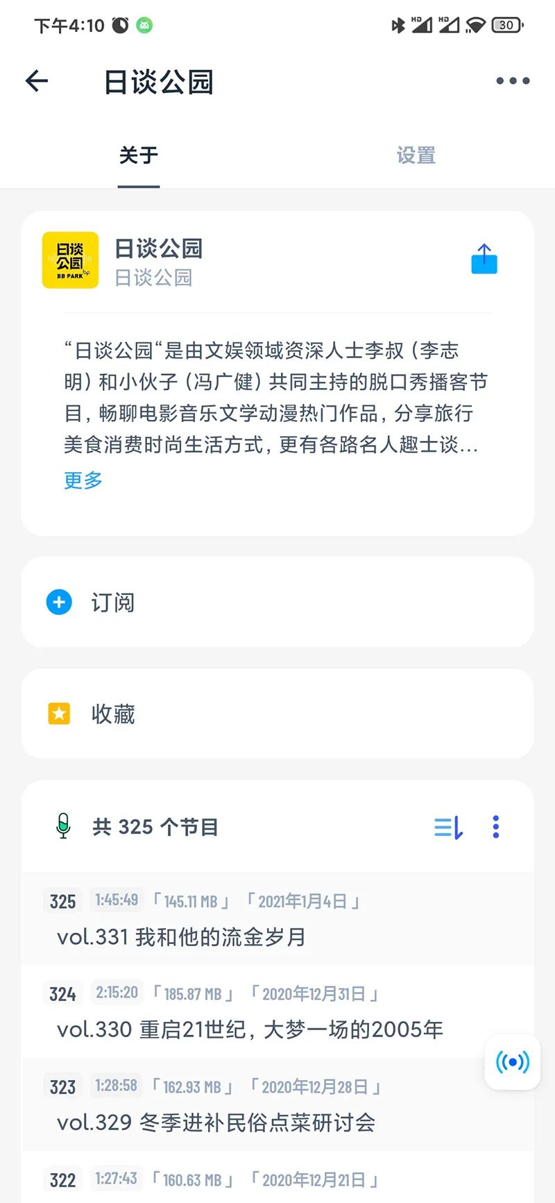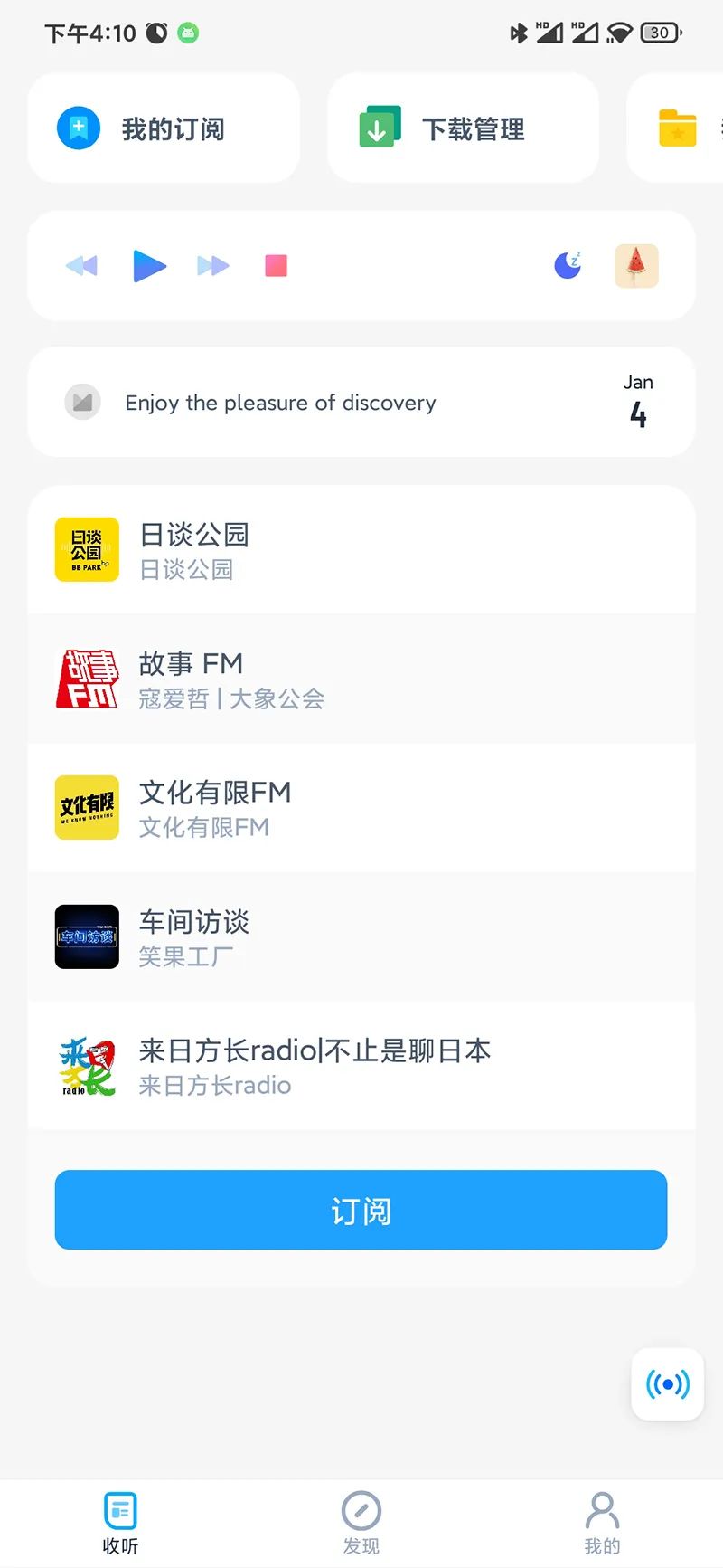 在首页采用了与微博一样的时间流表达方式,可按照单集节目排列用户所订阅的播客内容。