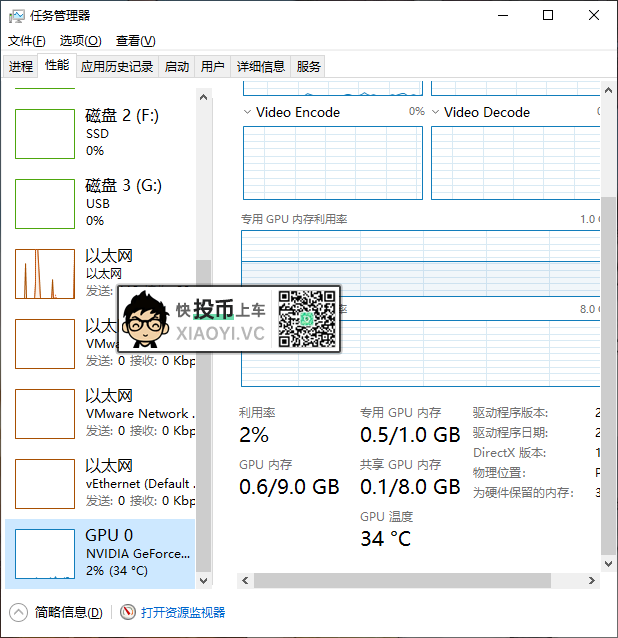 以前我们需要查看GPU温度,需要借助硬件相关的软件,而现在直接在任务管理里面就可以看到了。另外也支持显示硬盘SSD/HDD。