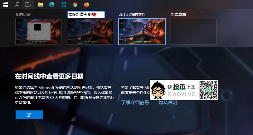 虚拟桌面其实也是上班摸鱼神器,如果你依赖虚拟桌面功能,切换桌面需要记住虚拟桌面的缩略图,而现在虚拟桌面支持重命名功能了,桌面切换时提供更直观的标签标识。