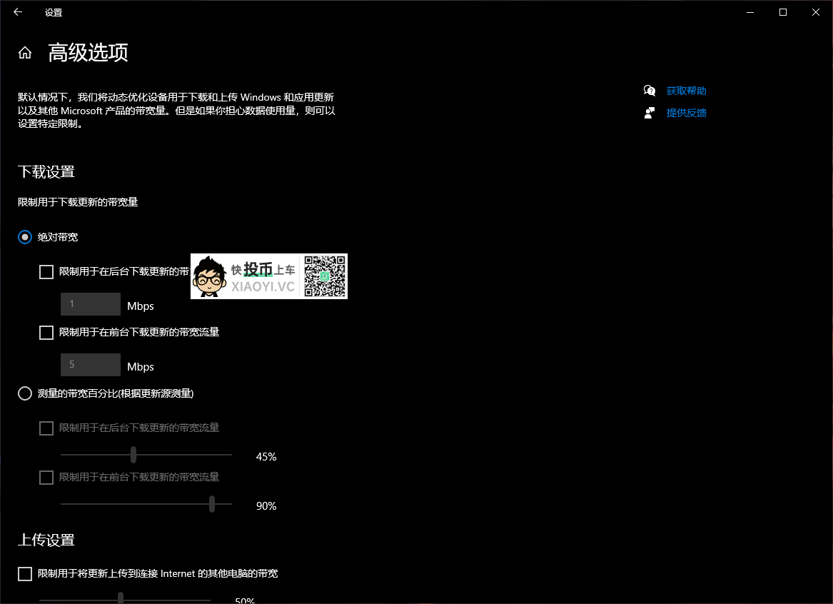 传递优化可以让我们灵活地控制下载更新的方式和速度,这项功能类似于下载软件的P2P传输功能,现在支持对下载和上传进行限速设置了,还有流量上限。