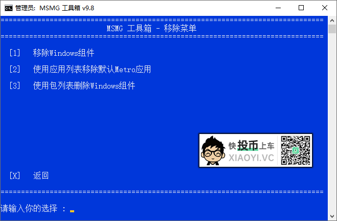 进入移除菜单,可以选择移除Windows组件、移除应用商店应用、使用包列表删除Windows组件。