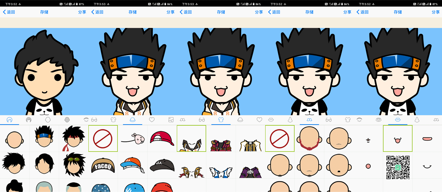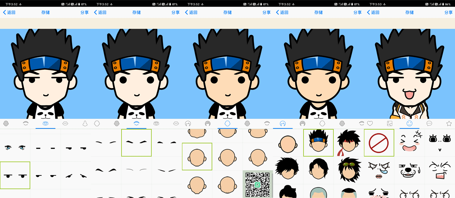 虽然「MYOTee脸萌」每个分类提供给用户的素材并不算多,不过组合起来还是有很多头像方案,发挥自己的想象力了。