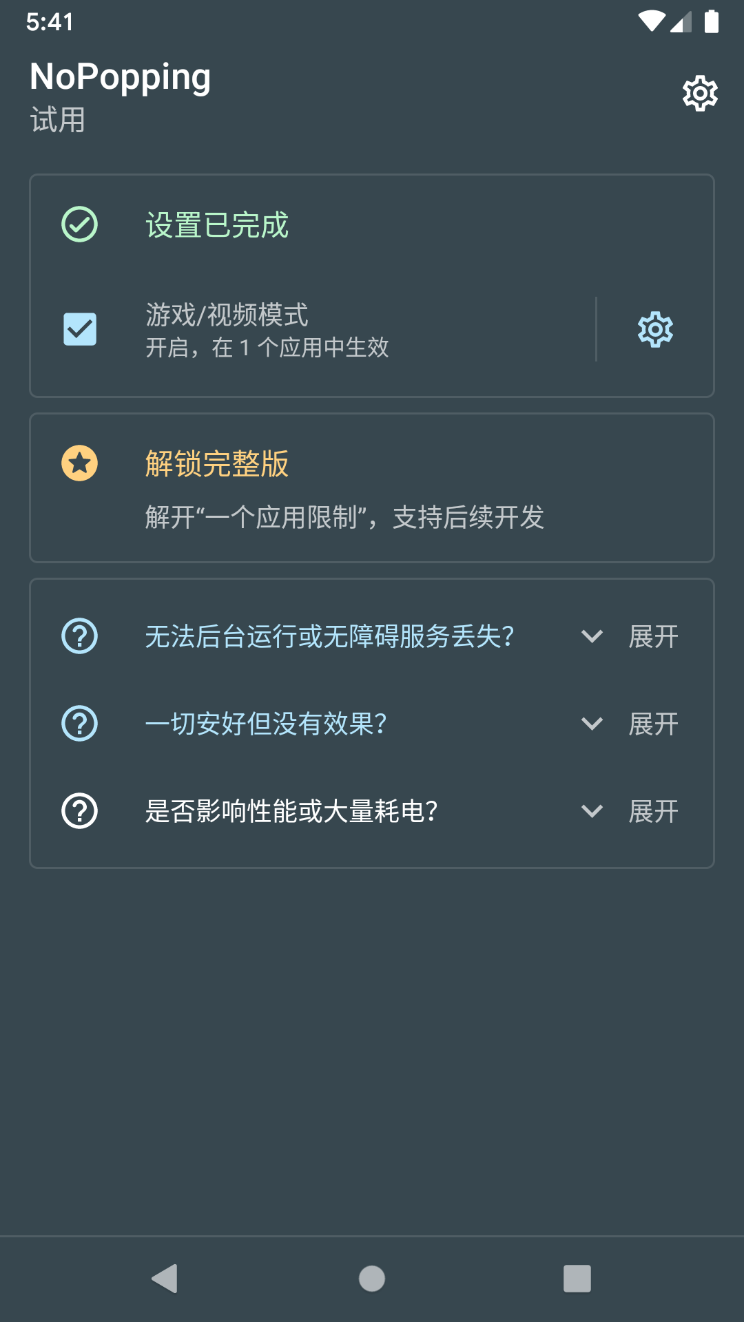 现在可以借助「NoPopping」这款应用,只需开启无障碍服务,选择你想开启勿扰模式的应用即可。