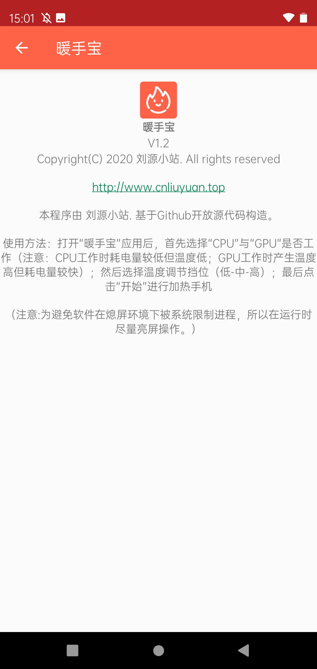 [安卓] 暖手宝 - 让手机真正为发烧而生天冷冻手,所以就有小机灵鬼开发了这款暖手宝应用,原理就是利用手机 CPU 运行产生热量来进行发热,晓龙 888 的用户效果特好。如果你现在很冷,那就下载来试试吧!下载地址: https://www.123pan.com/s/c8zA-lkzN3
