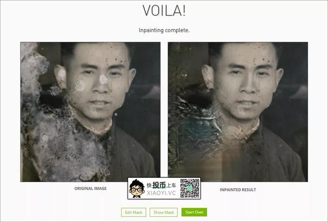 「Nvidia」除了这项 AI 视频生成技术外,还推出了 AI 图像深度学习修复技术「Nvidia Image Inpainting」可以修复损坏的照片,例如老旧照片因存放时间久的关系,出现腐蚀情况,AI 会根据照片内容填充损坏的地方。