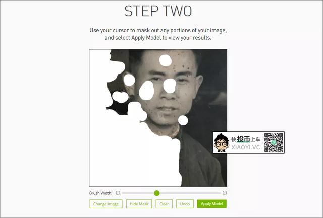 用鼠标涂抹照片需要修复的位置,Brush Width 支持调整笔画大小,大概涂抹就可以了,AI 会自动识别到。