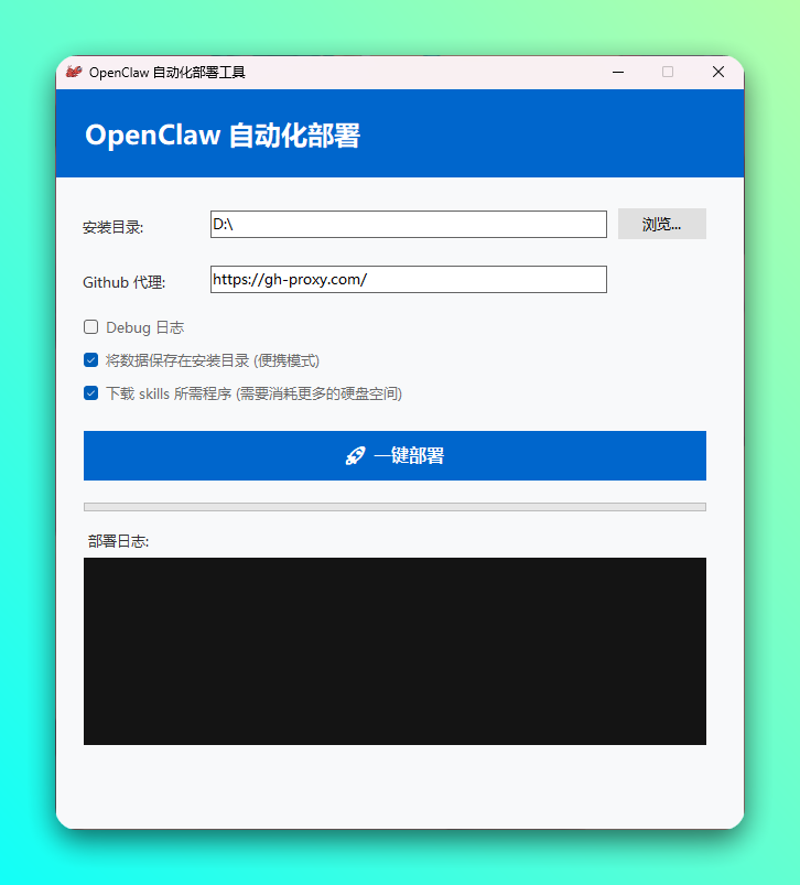 Windows 一键自动化部署“小龙虾” 开源项目「OpenClaw Installer」它旨在彻底解决在部署 OpenClaw 时遇到的 Node.js 环境配置、Git 权限报错、NPM 下载缓慢等痛点,提供真正的“一键式”开箱即用体验。注:本程序只会写入您指定的安装路径,安装完成后即可关闭或者删除,对后续使用openclaw没有任何影响。