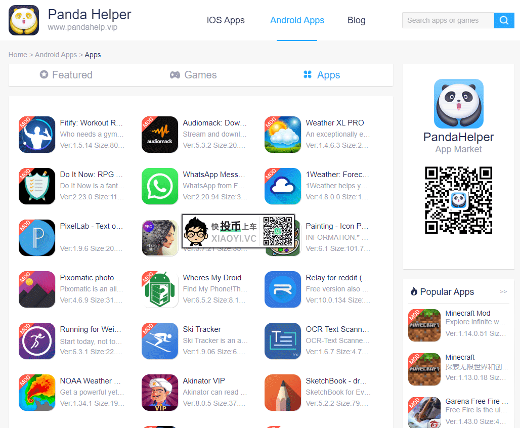 「Panda Helper」是少有支持安卓/iOS双平台的「应用商店」并且安卓版完全免费,下载速度也非常快,还有一些MOD的APP,这些是国内商店没有的。总之强烈推荐下载使用。