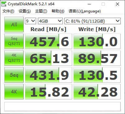 那么使用「PrimoCache」性能会提高多少呢?SoftGoing这里用硬盘性能测试软件「CrystalDiskMark」跑分。