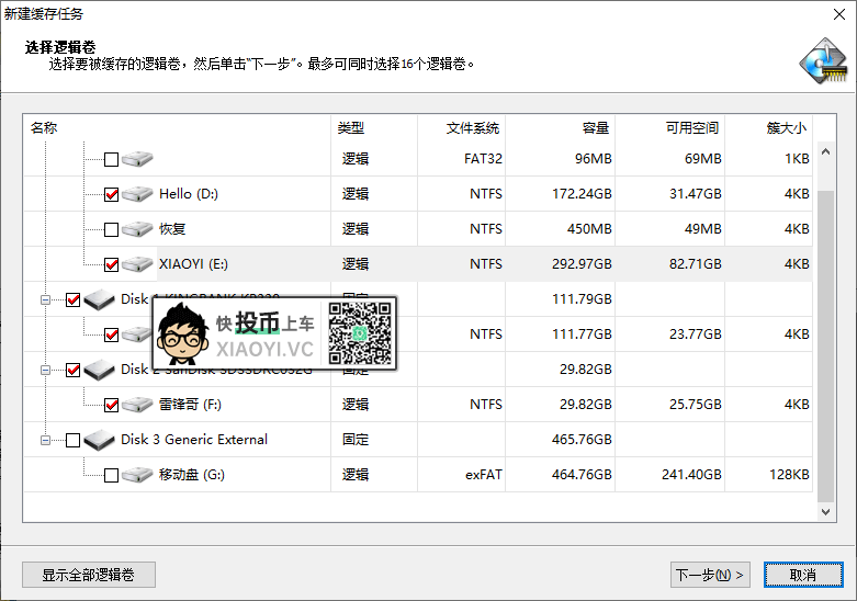 1.点击添加「PrimoCache」的缓存任务,选择你需要被缓存加速的磁盘。