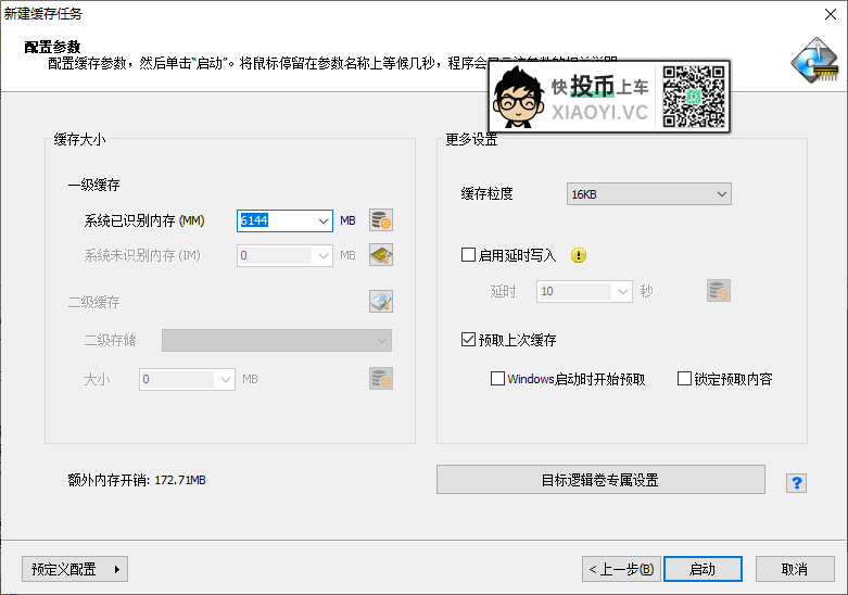 - 预读上次缓存:自动预读已经缓存的数据、支持Windows启动时开始预读(有可能会影响开机速度)