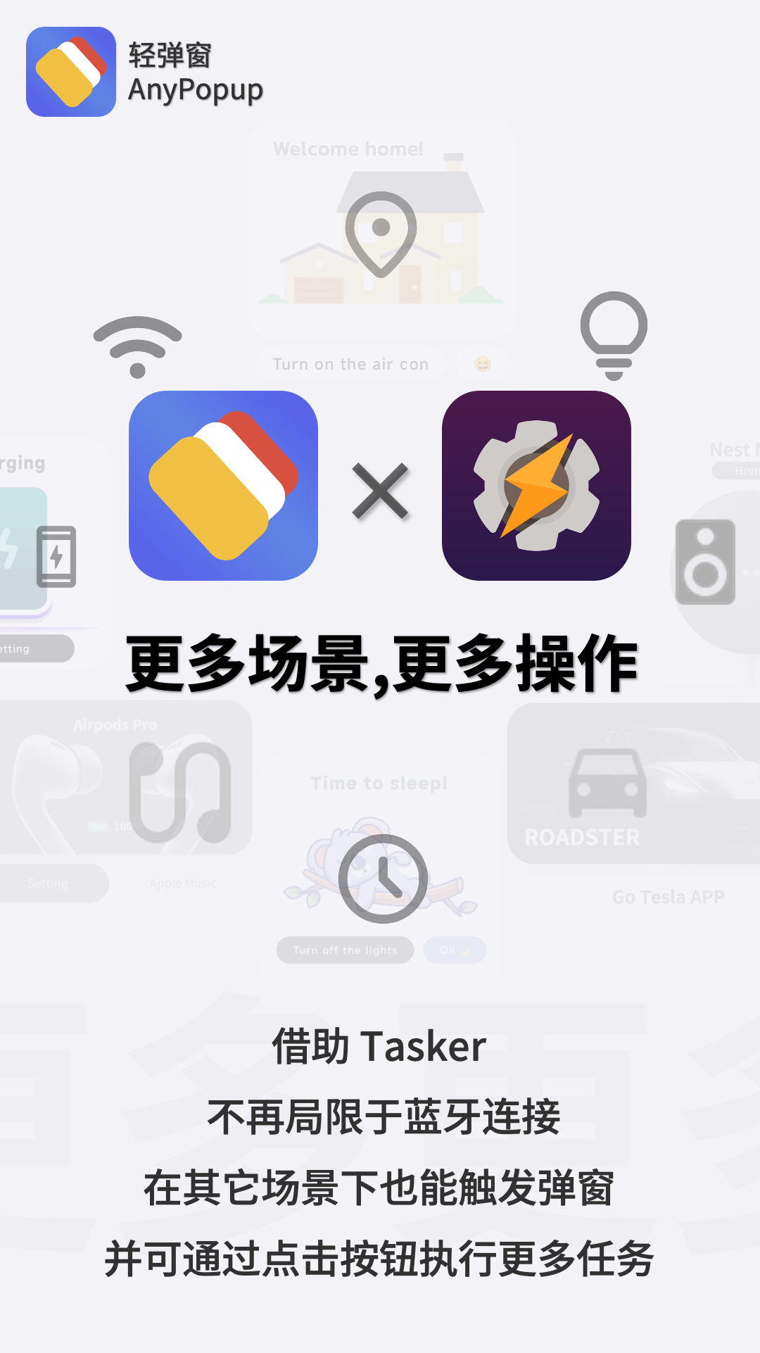 如果你需要蓝牙设备弹窗效果,支持自定义弹窗设备的内容可以用这款「轻弹窗」应用,号称安卓全能的弹窗工具,支持在多种场景弹出您的自定义弹窗,并可通过弹窗内自定义按钮执行设定的任务。