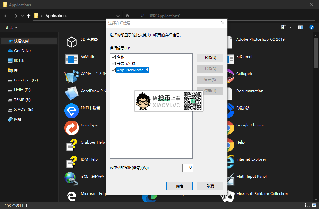 2.按 F10,查看 → 选择详细信息 → 勾上 AppUserModelID,然后确定。