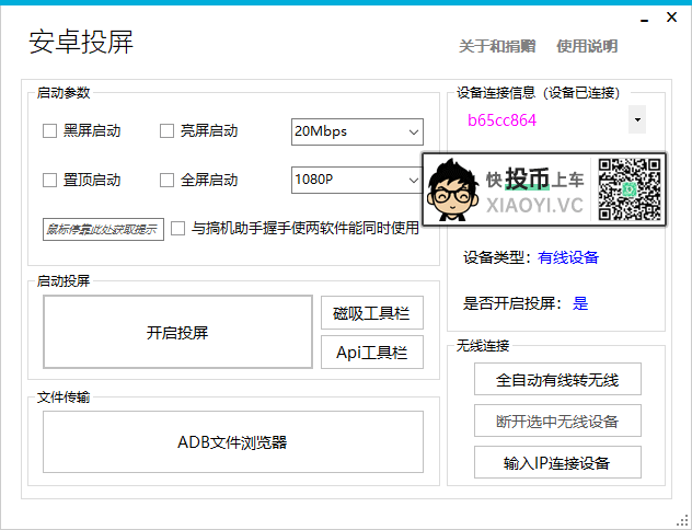 2.使用时请务必退出手机助手、安卓模拟器等一些列能连接手机的软件,以免造成投屏端口被占用而功能失效的问题。