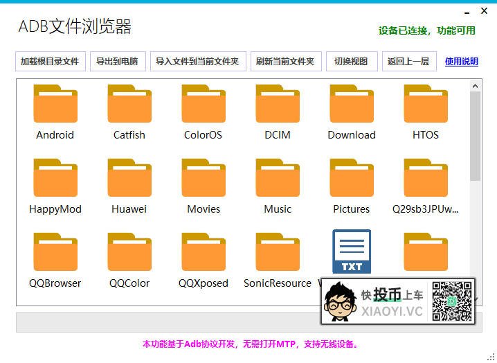 也可以用ADB文件浏览器对手机文件进行操作,可以对文件直接导出到电脑/或导入手机。