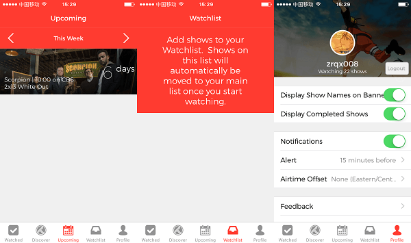 通过Upcoming你可以看到即将更新的美剧与动漫,还可以将想看的美剧动漫加入到Watchlist,