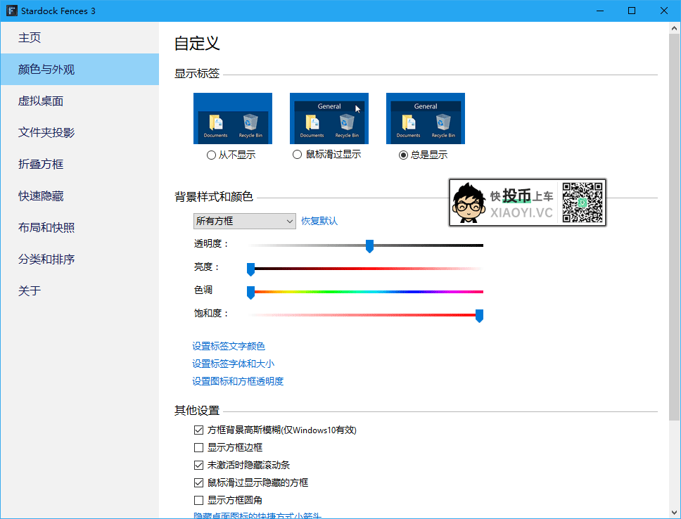「Fences」在桌面上创建一块一块的区域,并将桌面图标放入里面,可以随意拖动 ,随意改变大小,也可以对区域的外观样式进行修改。