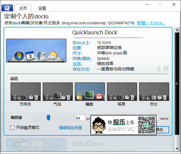 「ObjectDockPlus」一款实现MacOS桌面DOCK软件,功能比较强大,支持磨砂透明效果、支持各种自定义,更换皮肤,丰富的特效等。