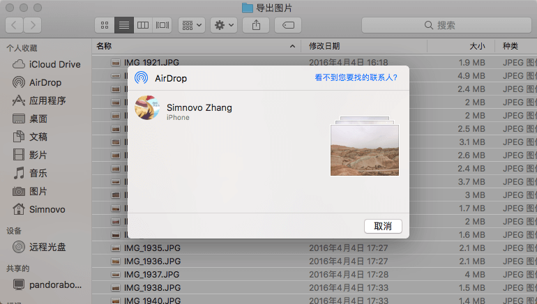 3、使用airdrop共享;