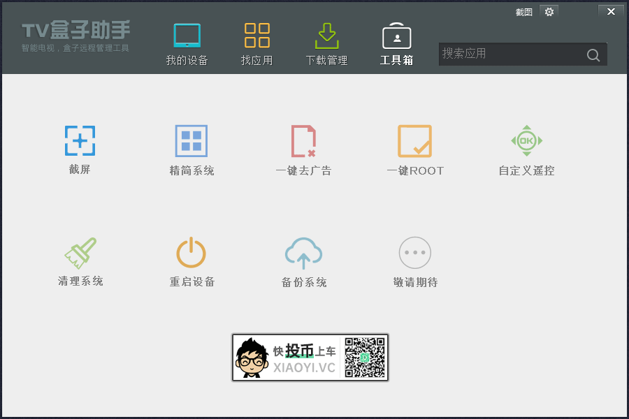 之前SoftGoing给大家介绍过「不支持安装APK,还敢叫"智能"电视?一招轻松解除限制」这款「ADB安装器」功能比较简陋,今天给大家推荐另外一款「TV盒子助手」除了可以远程装APP,还支持对电视机/电视盒子的系统进行精简、ROOT、一键去广告、垃圾清理等。