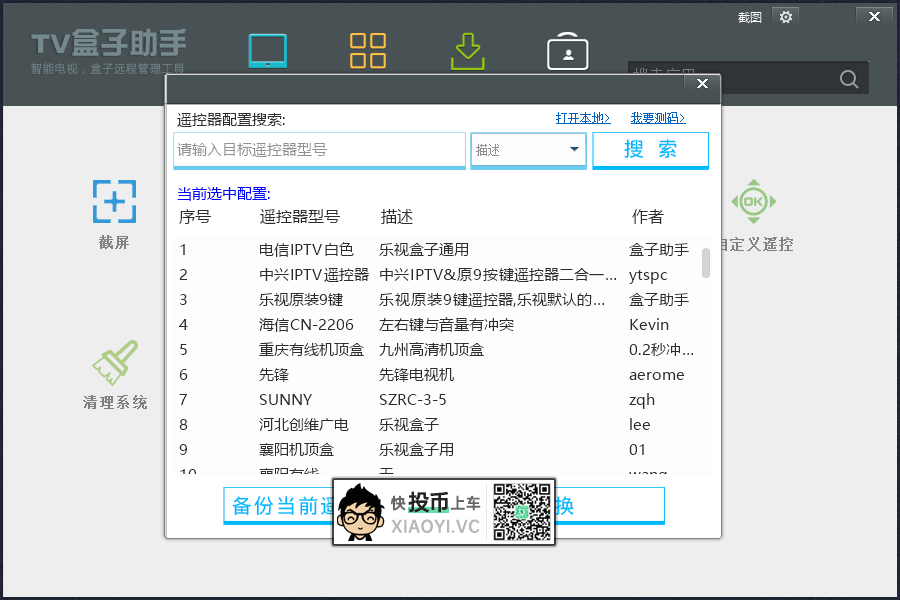 另外值得介绍的功能“自定义遥控器”,如果遥控器坏掉了,家里有其它备用遥控器可以方便的测码,然后替换按键操作。