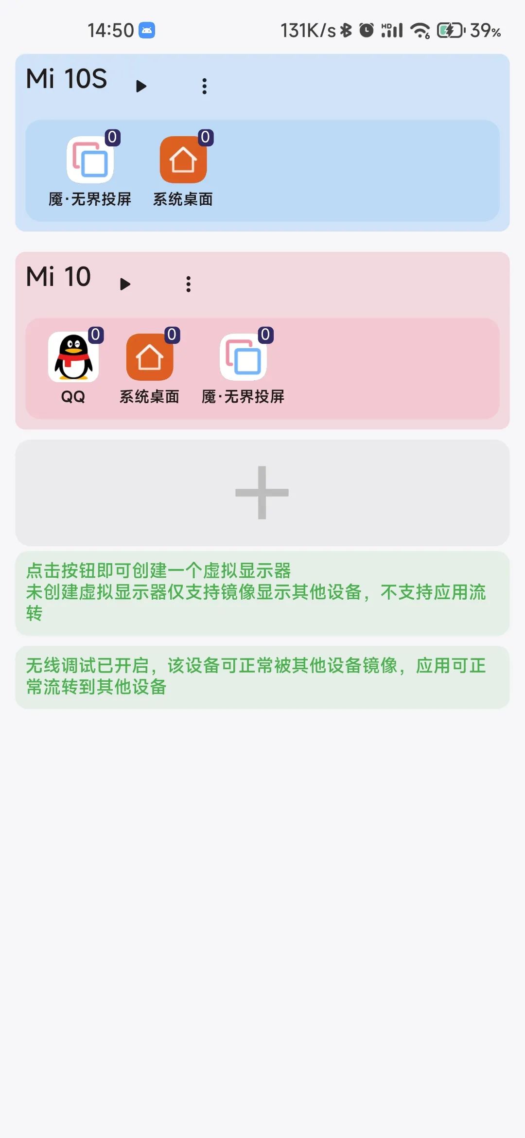 应用流转功能,需要手动创建虚拟显示器,之后你就可以把应用窗口单独显示在设备上了,目前不限制数量、不限制应用。不过经过一些小伙伴测试,似乎在一些机型上这个功能用不了。