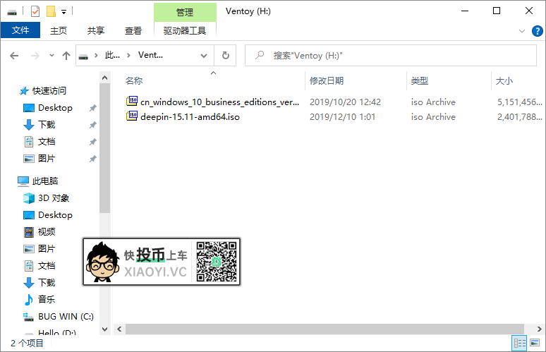 接下来直接把系统 ISO 镜像复制到 U盘 里面就可以了,SoftGoing这里复制了「Windows 10」和「Deepin」的系统镜像到 U盘 里面。(注意:镜像名称不要出现中文和空格,否则会识别加载不到)