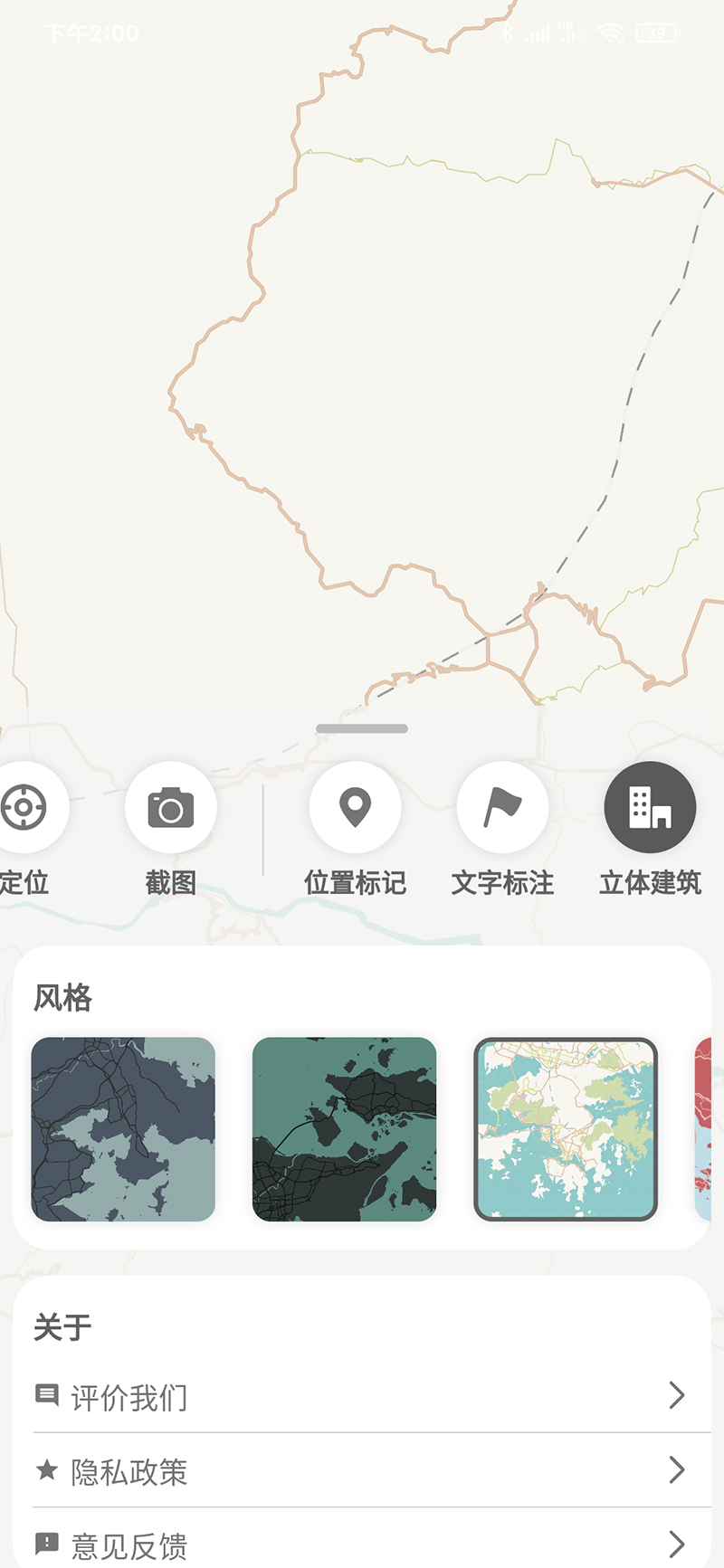 功能上内置了几种地图样式,你可以设置位置标记、文字标注等。最后点截图按钮生成,设置为壁纸就可以了。