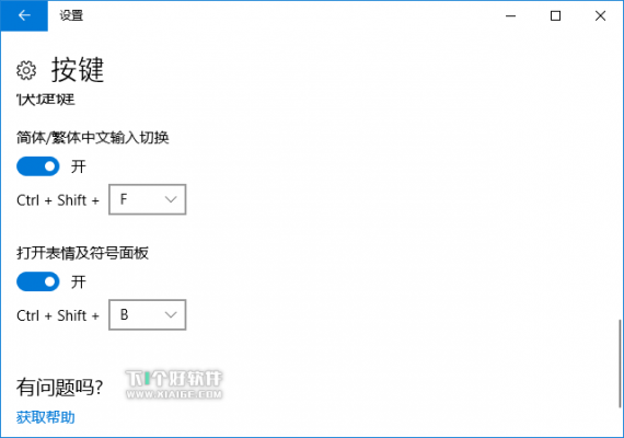 在【设置】>【时间和语言】>【区域和语言】>【中文】选项>【微软拼音】选项>【按键】中设置。