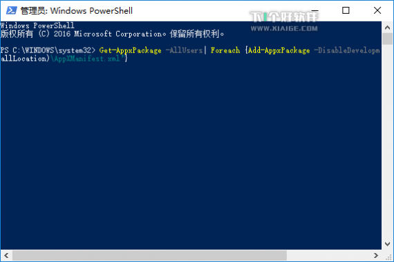 然后等待执行完毕后,重启电脑,Win10内置应用就会全部回来啦。