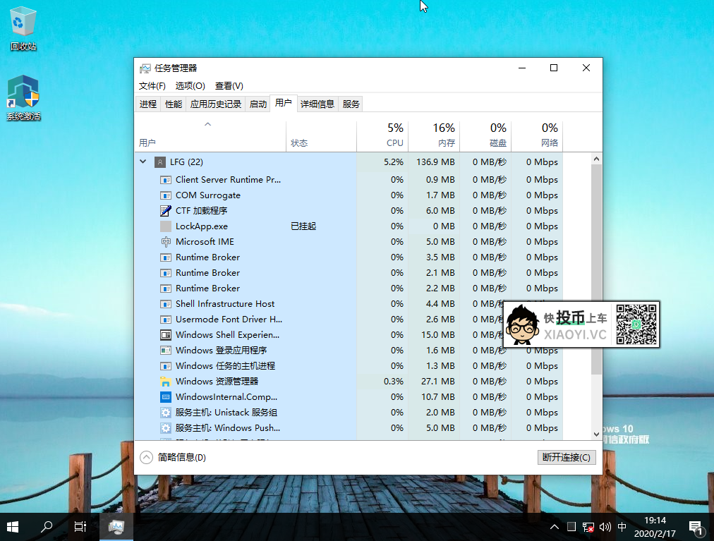 安装好后的磁盘占用空间大概 10G 左右,开机系统进程只有22个,主要少了应用商店和一些组件功能。