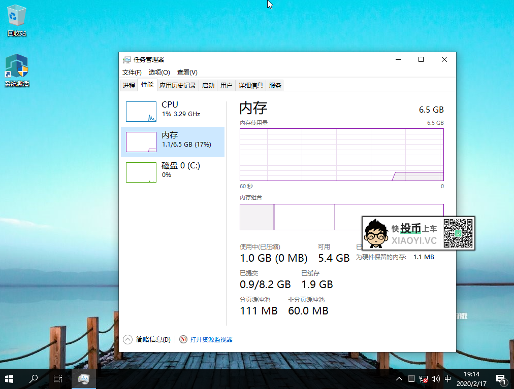 内存占用只有1G左右,对内存比较少的用户来说,不再担心开机就内存告急了。