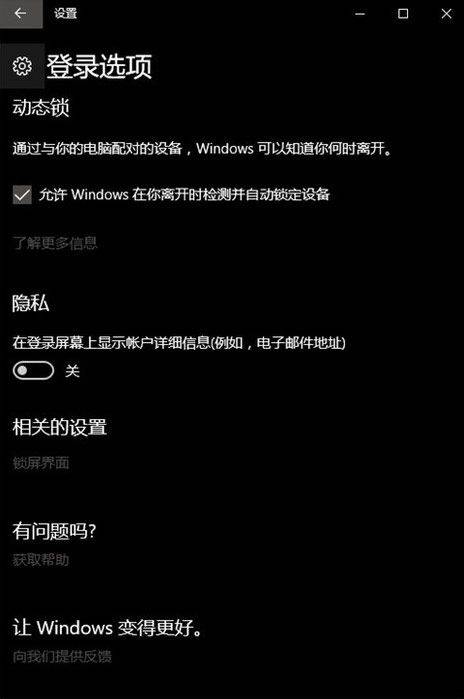 2.进入「设置」→「账户」→「登录选项」→「动态锁」。