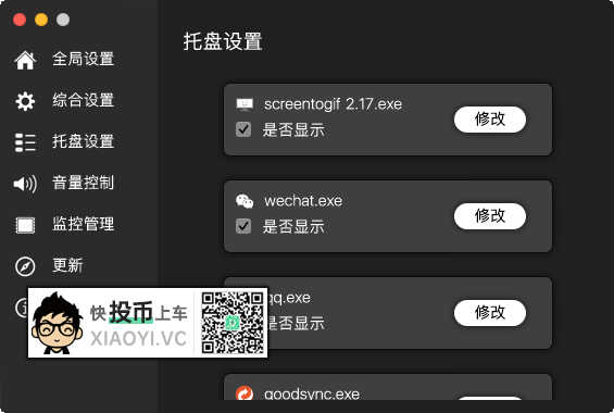 「MyFinder」设置上支持托盘设置要显示的图标、自定义菜单栏标题、使用暗黑模式、自动切换全局模式、模糊效果、硬件监控管理设置等等!