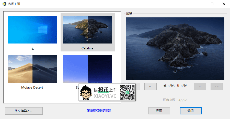 「WinDynamicDesktop」内置了Catalina、Mojave Desert的壁纸,也可以到官方网站上获取更多动态壁纸,但是有些是要付费的。