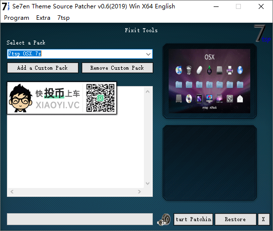 另外一种是图标包替换到DLL文件里里面,运行「7tsp GUI」软件,载入图标压缩包文件,然后点击 "tart Patchin" 开始替换。