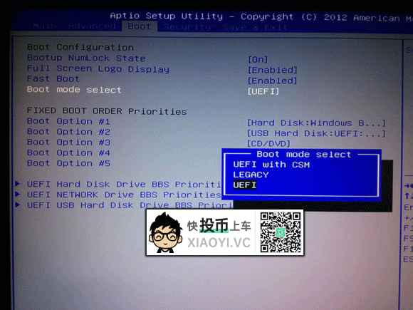 不同的主板设置方法略不同,Boot mode select 中选择 UEFI,然后把 Fast Boot 设置 Enabled。现在主板设置一般都是中文的了,很容易设置。