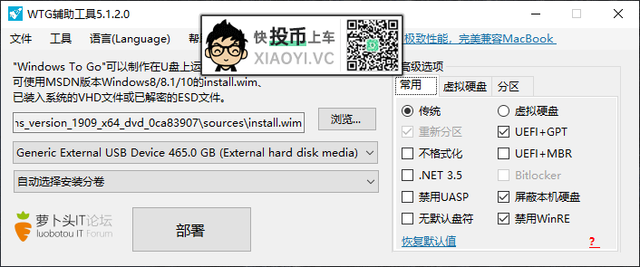 不过我们可以借助第三方工具来绕过微软的认证需求,这里SoftGoing要给大家推荐用这款「Windows To Go 辅助软件」可以非常方便的把「Windows 10」安装进U盘/移动硬盘。