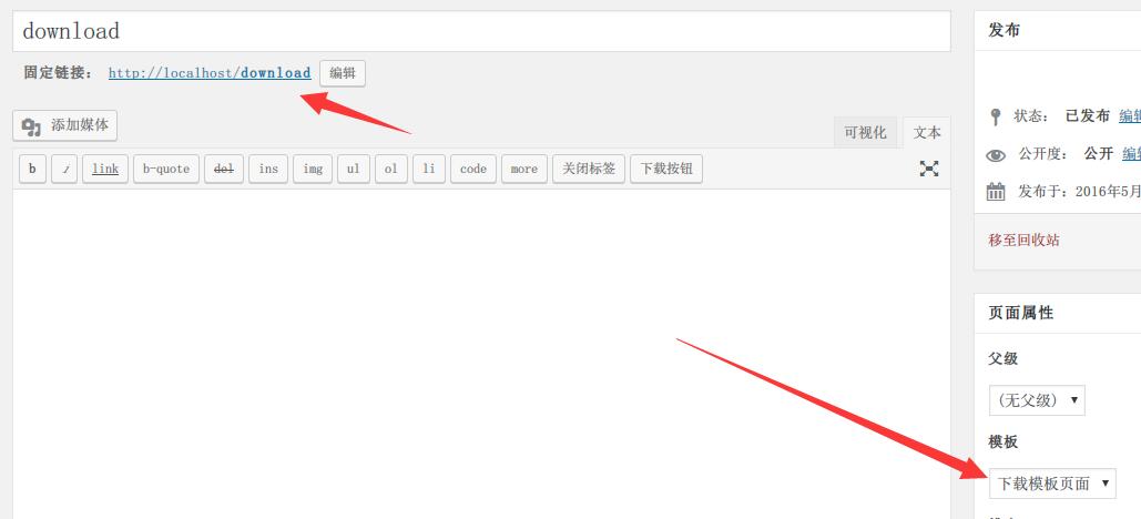 使用这段代码可以在WordPress文本编辑器出来一个按钮,使用的时候先写几个字,比如点击下载,然后选择文字之后点击按钮,就好了。做到这里下载单页就做好了,下面说说具体怎么使用吧。