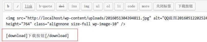 QTags.addButton( 'hy_download', '下载按钮', '[pdownload]', '[/pdownload]' );