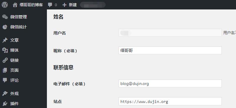 * 四合一简化 WordPress 后台用户个人信息姓名昵称设置