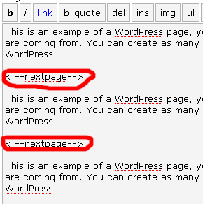 <?php link_pages('<p><strong>Pages:</strong>', '</p>', 'number'); ?>是的,这是相同的用于编码页面的分页链接的代码。同样我们也可以把日志分成多篇子日志。