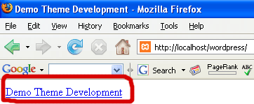 <a href="<?php bloginfo('url'); ?>"><?php bloginfo('name'); ?></a>返回到浏览器,刷新,当鼠标在链接上面的时候,浏览器的状态栏应该显示 http://localhost/wordpress