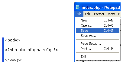 编辑 index.php 文件。在 <body> 和 </body> 这两个标签之间输入 <?php bloginfo(‘name’); ?>,然后保存它。